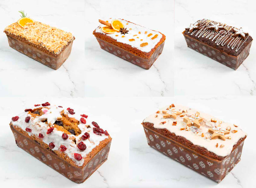 Surtidos de los 6 cakes clásicos: Blueberry, Zanahoria, Chocolate al 70%, Naranja y Plátano.