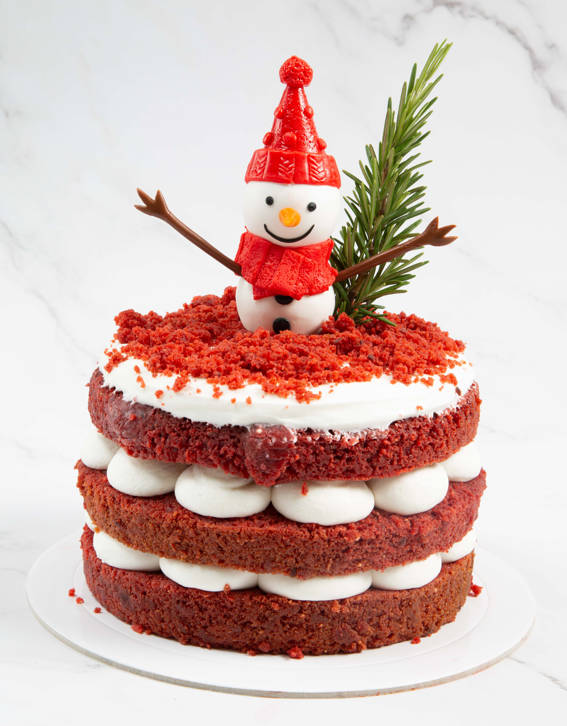 Bizcocho de chocolate rojo aterciopelado, con capa de manjar y crema de queso.