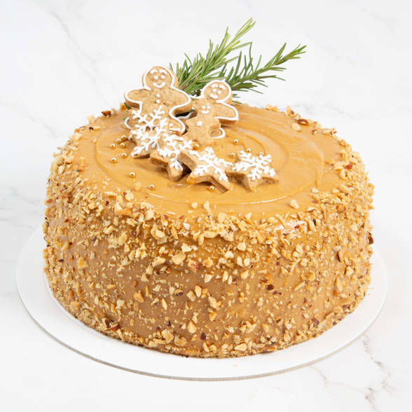 Bizcocho de vainilla relleno con manjar de olla y castañas tostadas.